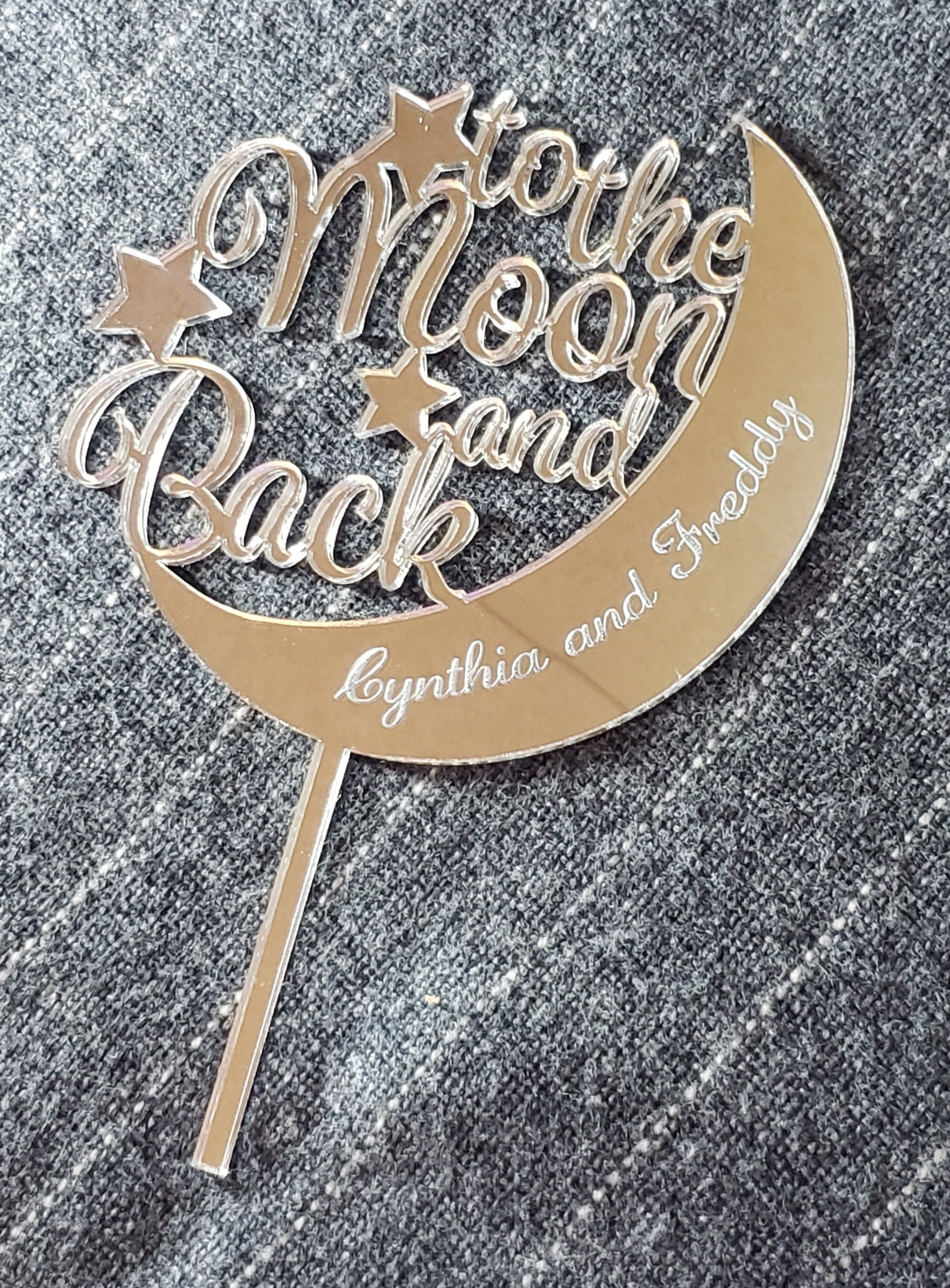 To The Moon and Back, Cake Topper for Wedding, Anniversary, Custom Cake Topper